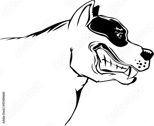 Stock Illustration Of Old Fashioned Cartoon Drawing Of Grinning Pitbull Frontal Dropped Out
