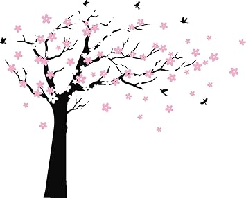 Mafent Large Cherry Blossom Tree Blowing In The Wind Tree Wall Decals Wall Sticker Vinyl Wall Art Kids Rooms Teen Girls Boys Wallpaper Wall Stickers